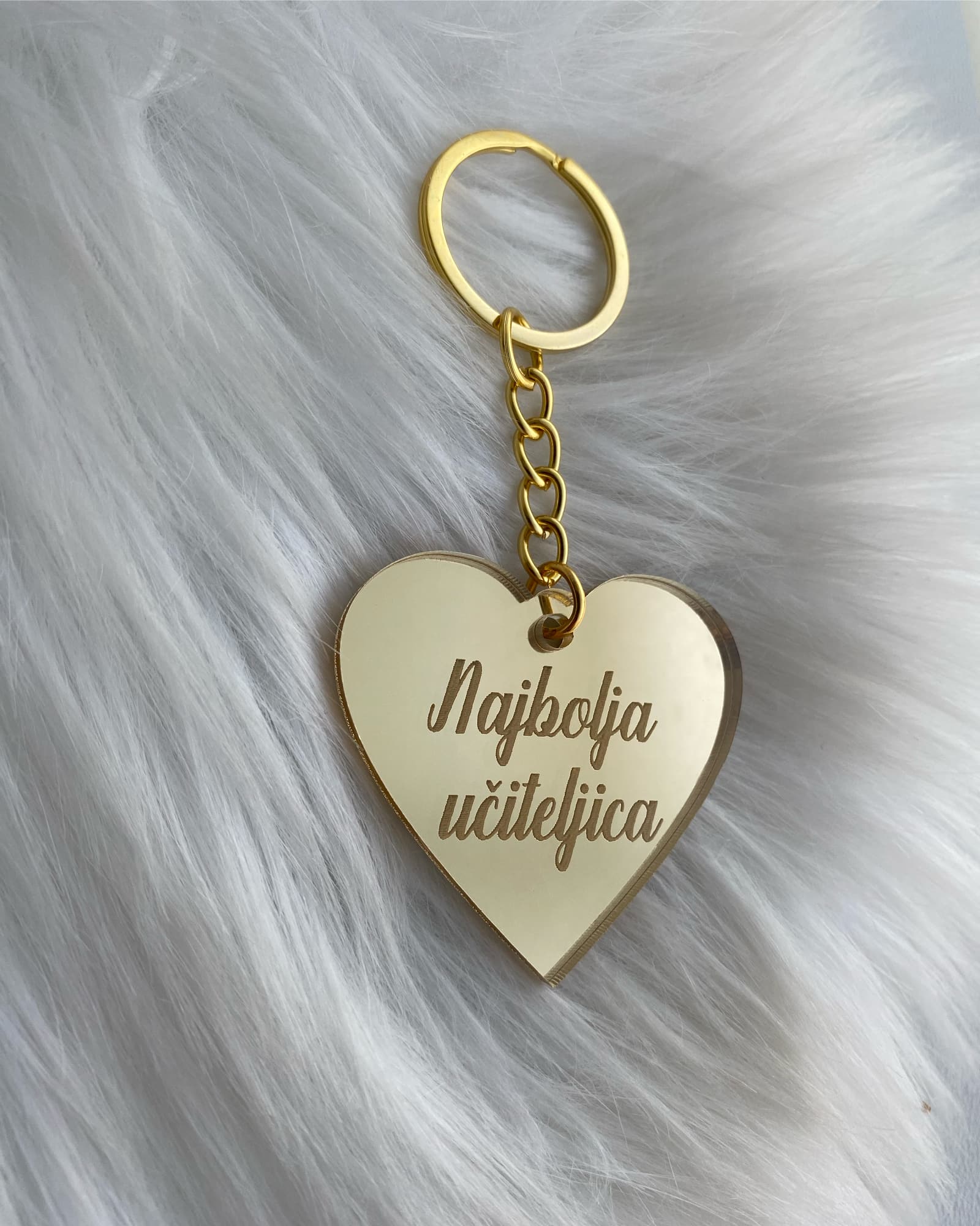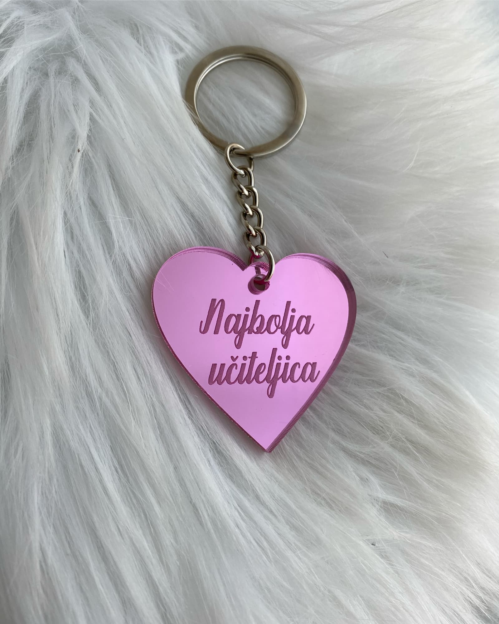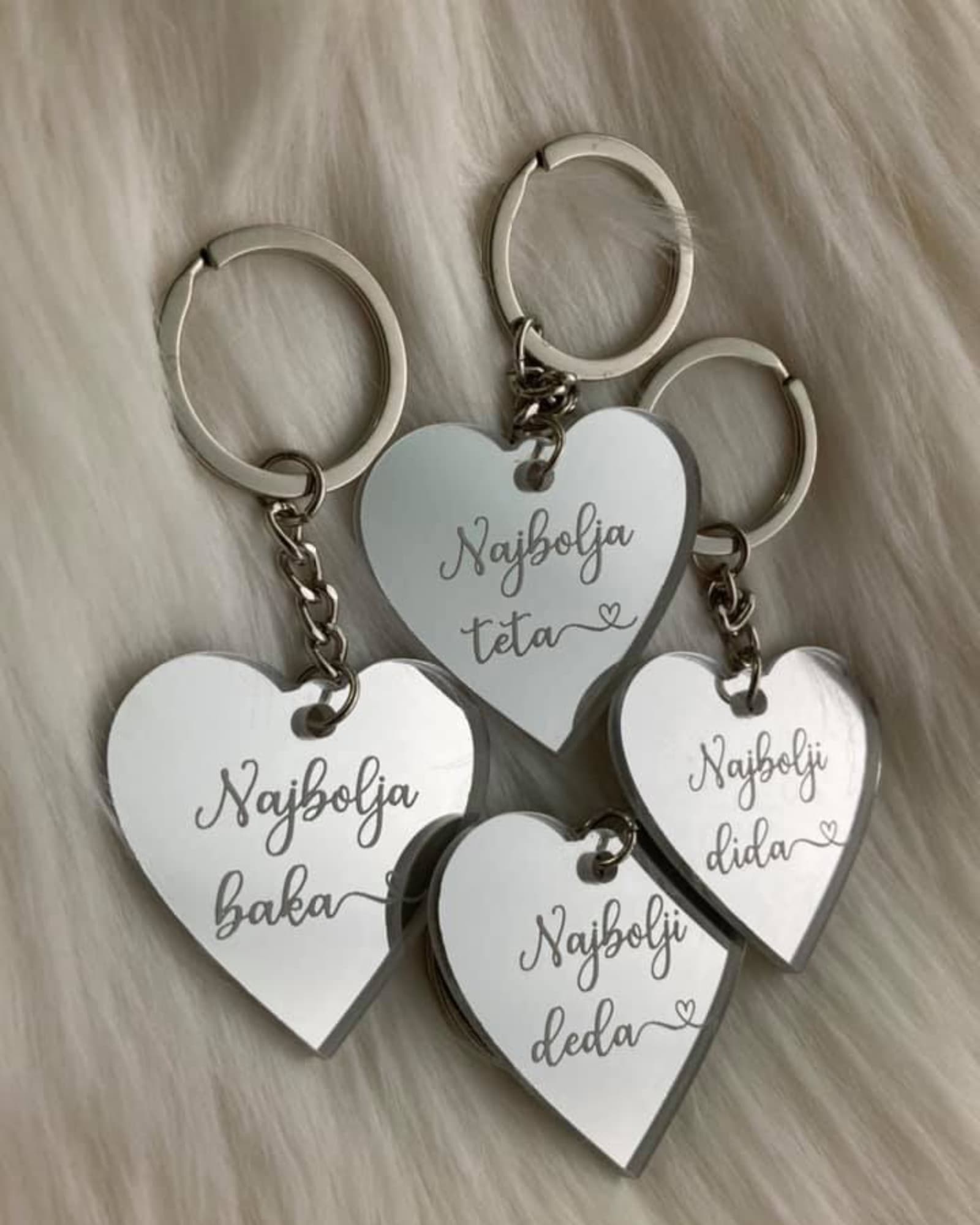 Privjesak za ključeve od zrcalnog plexiglassa s natpisom po vašoj želji (npr. “Najbolji dida”, “Najbolja teta”, ili druga riječ/poruka).