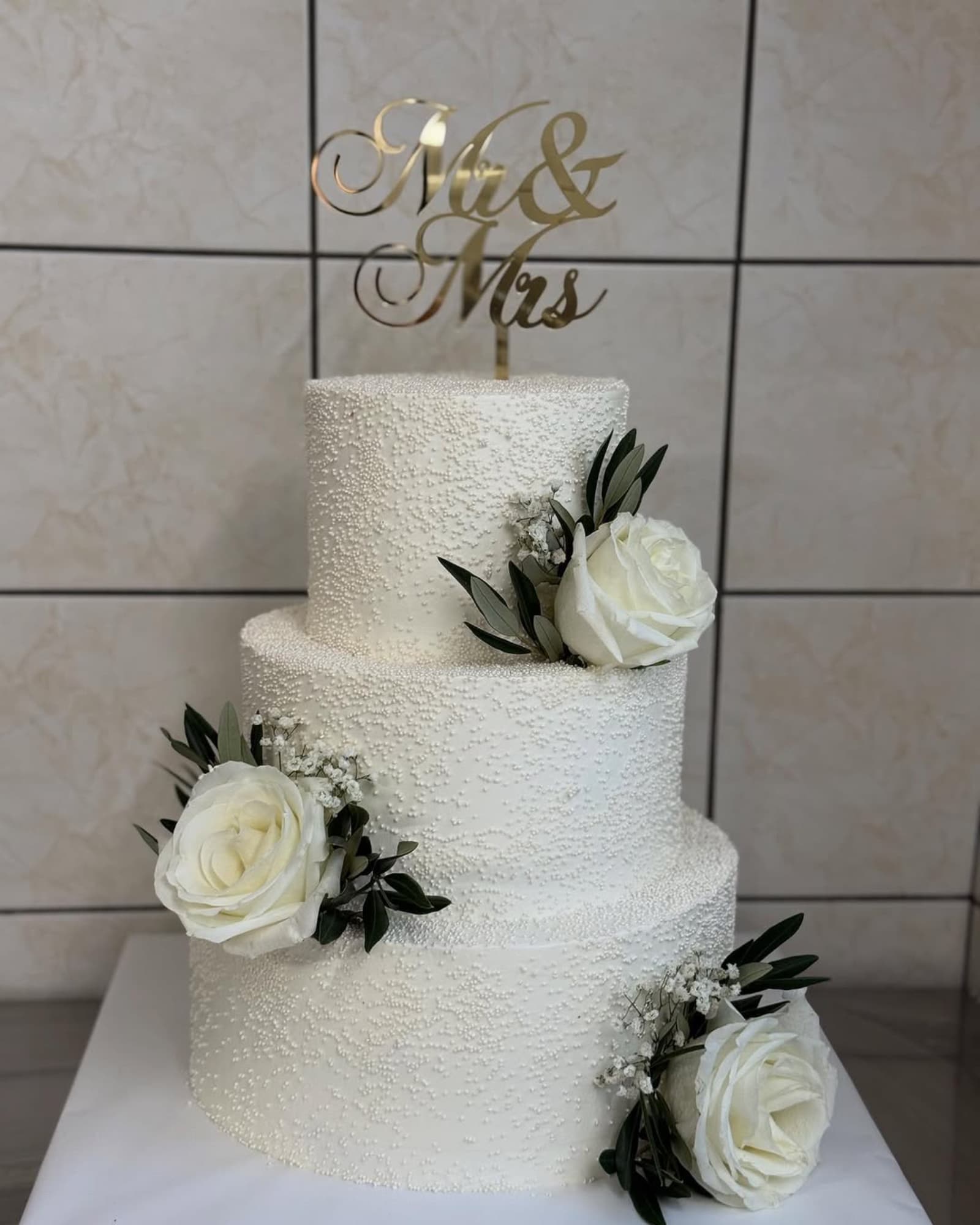 Topper za tortu za vjenčanje s natpisom “Mr & Mrs”.